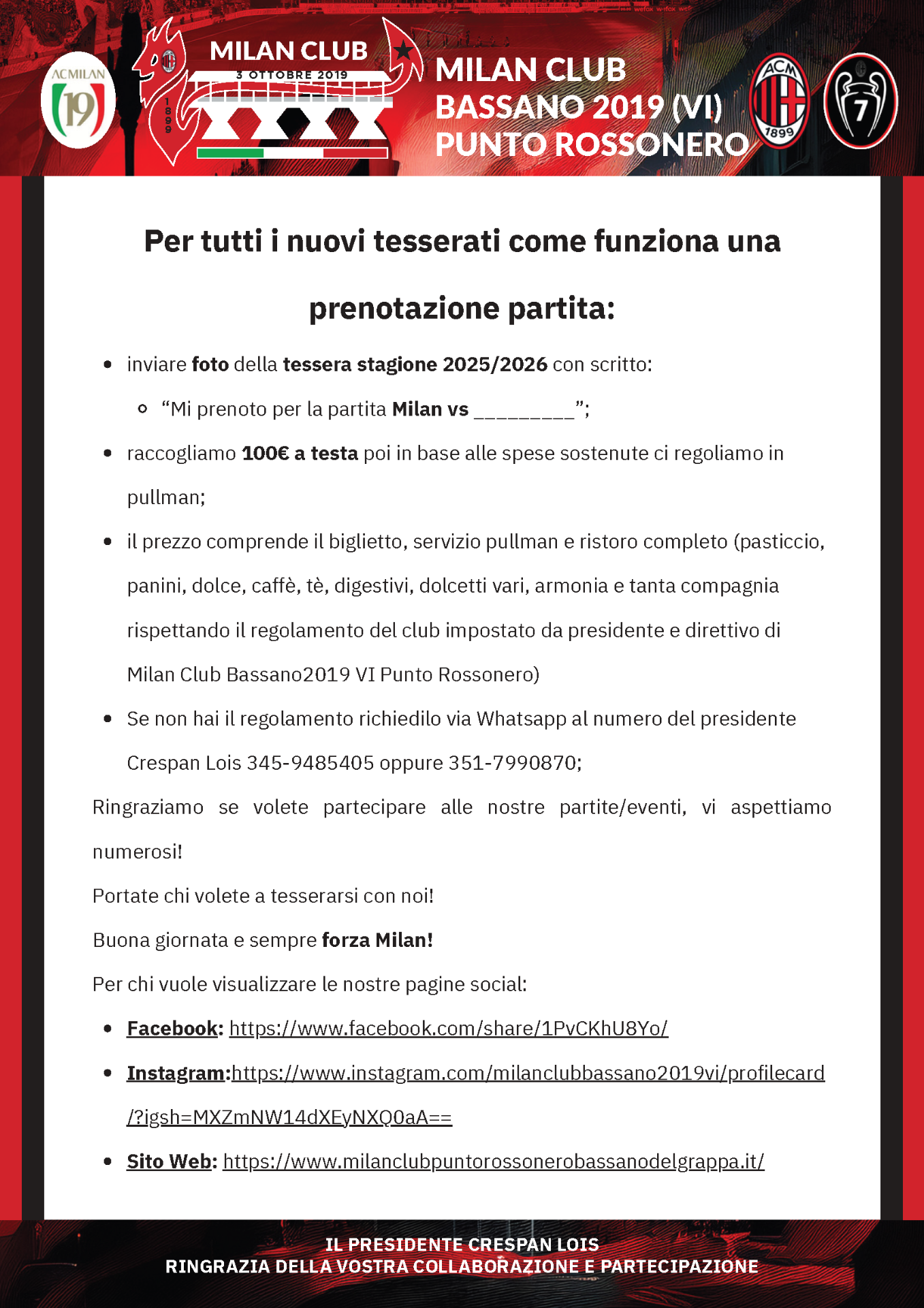 © MILAN CLUB BASSANO 2019 VI PUNTO ROSSONERO